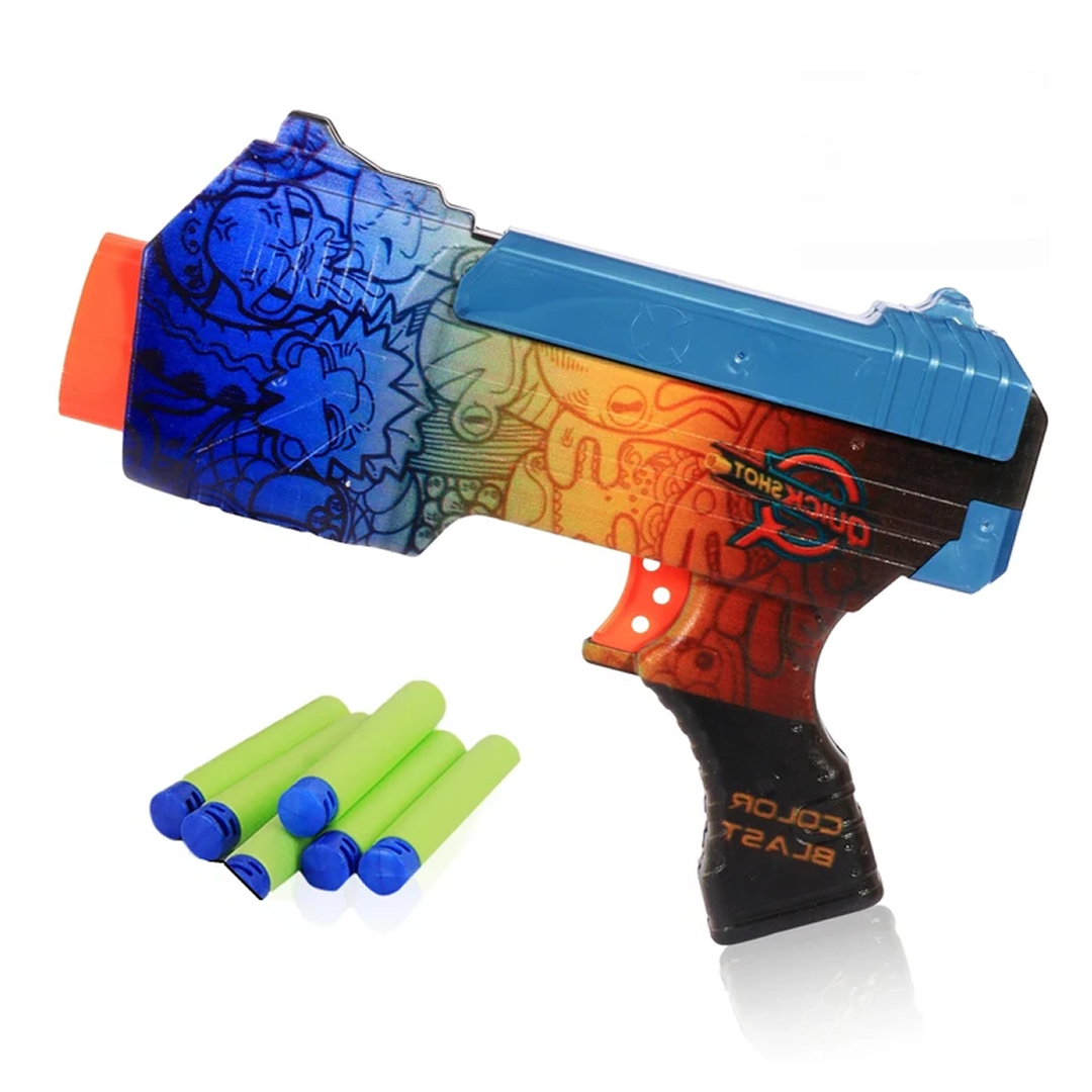 The Dart Blaster Gun is the ultimate play weapon for thrilling adventures and friendly competitions. Designed for speed, accuracy, and safe play, it features soft foam darts that can shoot over impressive distances without causing harm. Its easy-to-load mechanism and ergonomic grip make it perfect for kids of all ages to enjoy fast-paced action. Ideal for team battles, solo target practice, or backyard fun, the Dart Blaster Gun sparks excitement, builds coordination, and turns any play area into an action zone.
